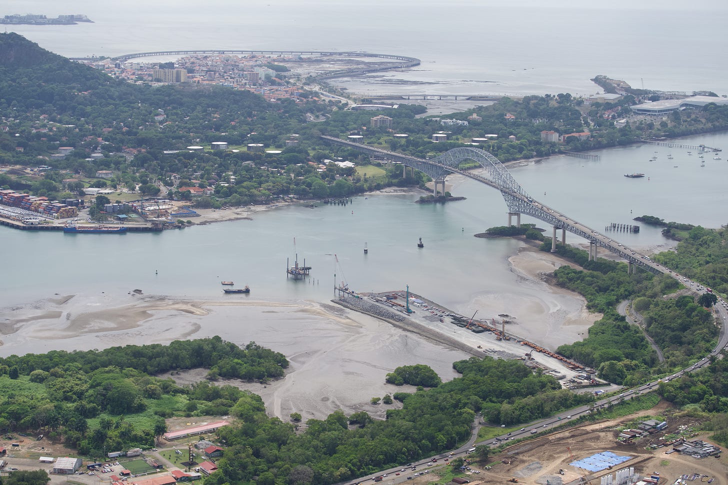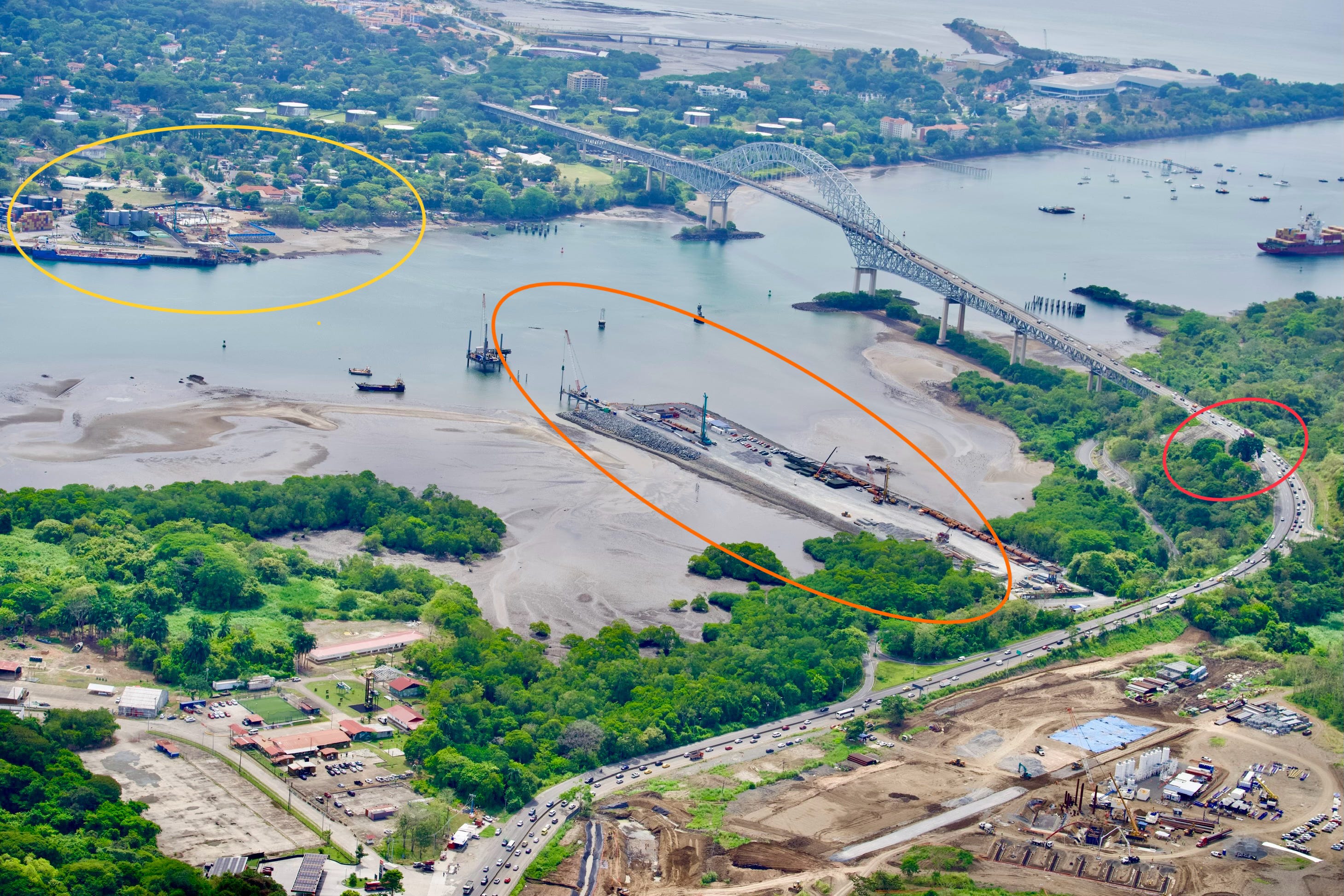 Orange is China Bridge under construction. Yellow is bridge landing at the Balboa port Maersk is reportedly taking over:
