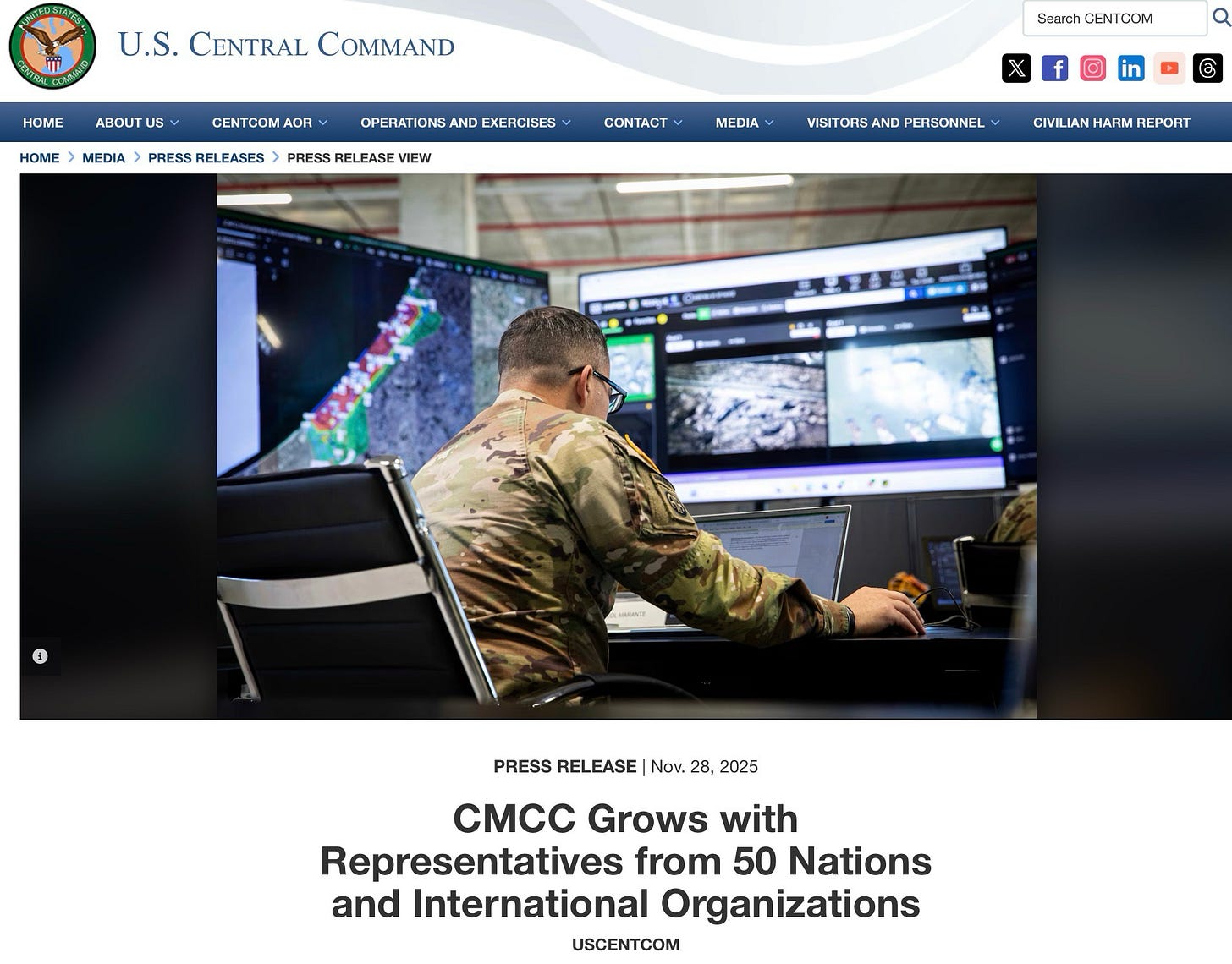 Meanwhile, the CMCC in Israel is closed due to close rocket strikes. CMCC = Civil Military Coordination Center.